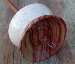 This spindle is a take off from the Mjolinor but is center weighted. Named also after a family friend this spindle is as much a joy to spin on as a conversation with the lady herself.