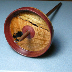 After much thought I have engineered a spindle will a large whorl, from 2 3/4 to 3 inches, a shaft length of 7 inches and weights from .4 to .9 depending on the wood chosen. Theses spindles spin for a long, long time, look delicate but are durable, fast, light and perfectly balanced. You can enjoy spinning for a long time before the cop fills up on this spindle.